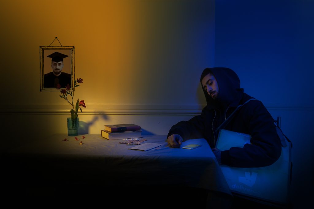 The Waiting Room is a gate into the complex emotions that migrants experience as they navigate their place in the world. A sort of imaginary isolated room symbolising the feelings we live through the waiting process where Migrants, Asylum Seekers & Refugees who live in the UK wait to receive the Home Office responses and decisions on their cases, living every single day full of worry, despair, exhaustion, pain & longing, despite the need to survive in a new environment. The works on display will depict the intense emotions that come with being away from home and trying to fit into a new culture. Through a blend of photography and digital art, Nosayba, Eman and Abdullrhman created pieces of 4 walls, each wall tells a comparable but diverse story of how humans feel when they are away from their families, home and familiar surroundings.