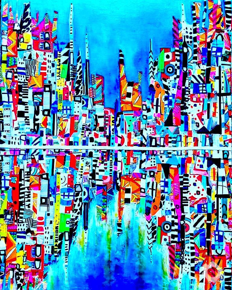 When executing a painting, whether it be custom-made, for an exhibition, or solely for my own pleasure, I like to be spontaneous in my approach, sampling and experimenting with various styles and techniques, which often includes collage.