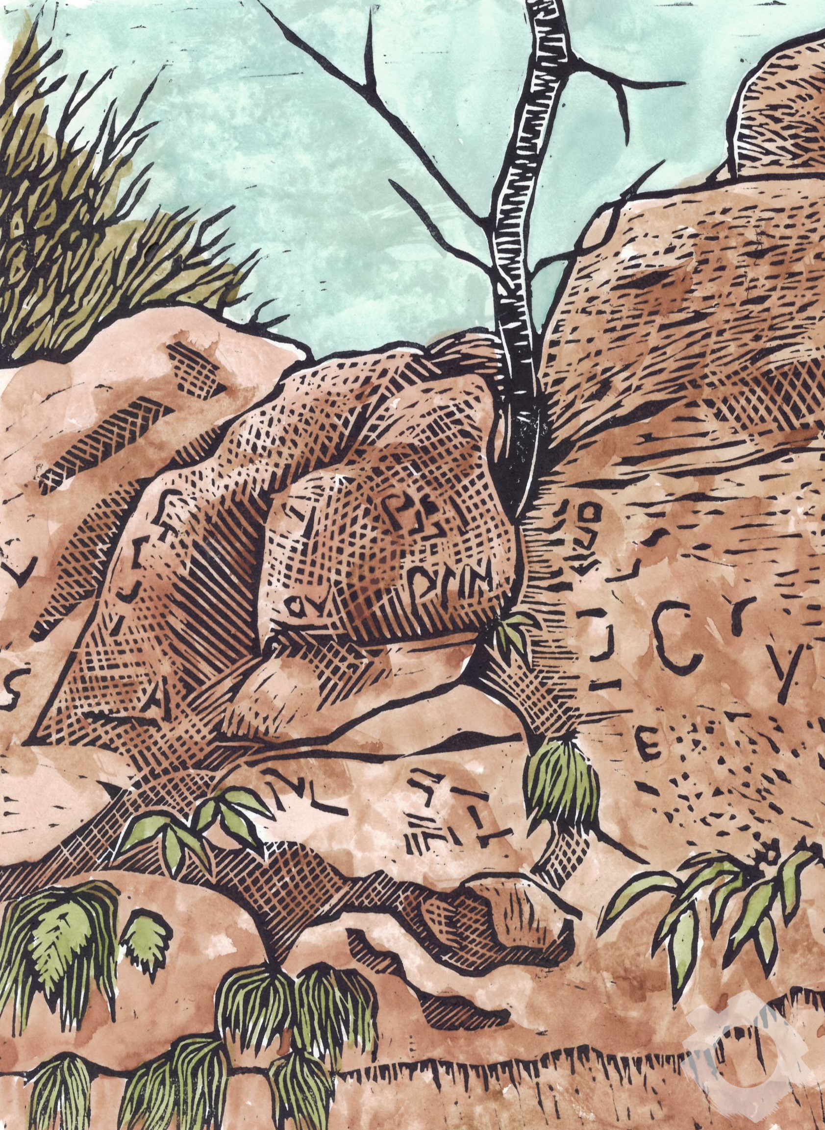 The direction, shape and depth of carving reflects how I see the movement in the landscape. I may take multiple proof prints to judge how it is progressing till I am satisfied that it is time to print. Once the ink has dies, I then add a watercolour wash to finish the print. From start to finish the process could take a couple of weeks.