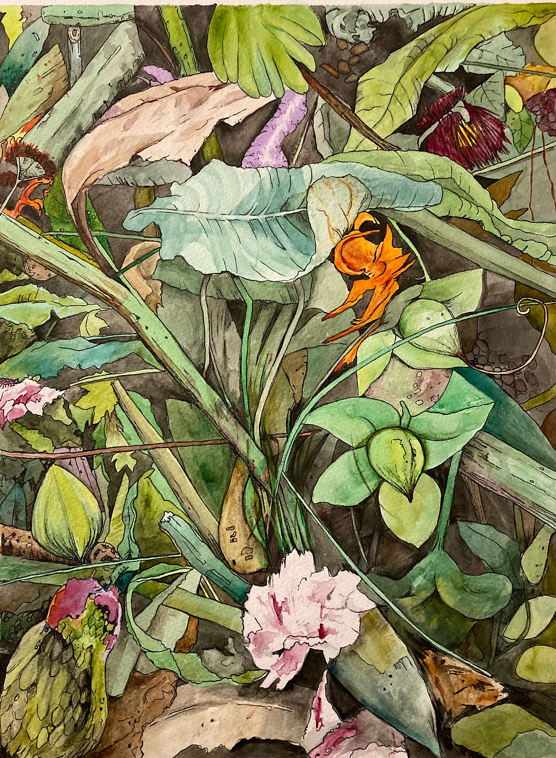 I have recently been developing paintings in watercolour and acrylic based on close-up studies of flowers and plants.