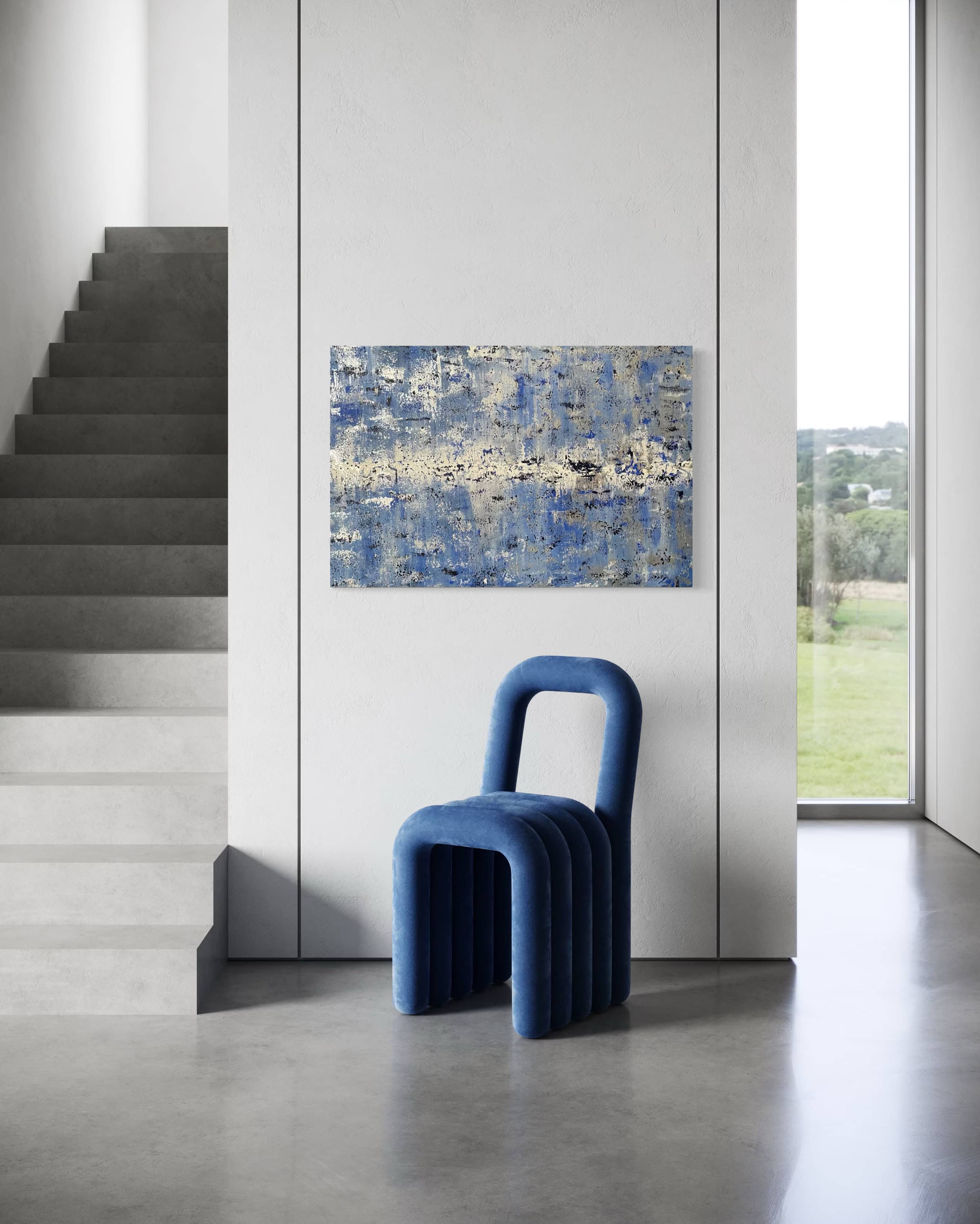 SKU: Break Through Category: Jacques Loguellou Tags: abstract, b&w, black and white, blue, break through, expression, grey, mark making, monochrome, neutral, organic, painterly, texture, texture paste