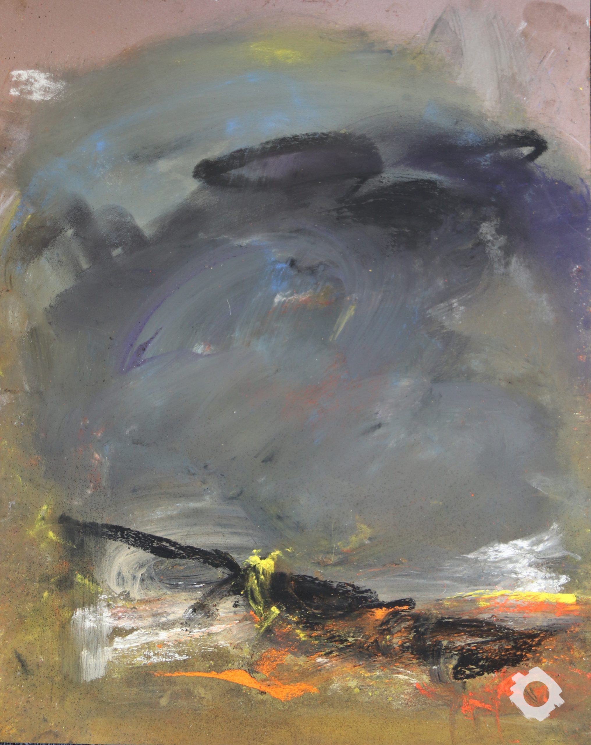 SKU: Crossing Paths Category: Julie Lawrence Tags: abstract, acrylic, body, bright, Colour, crossing paths, figure, grey, horizon, neon, orange, outdoors, shadow, showers, silhouette, sky, walking, yellow