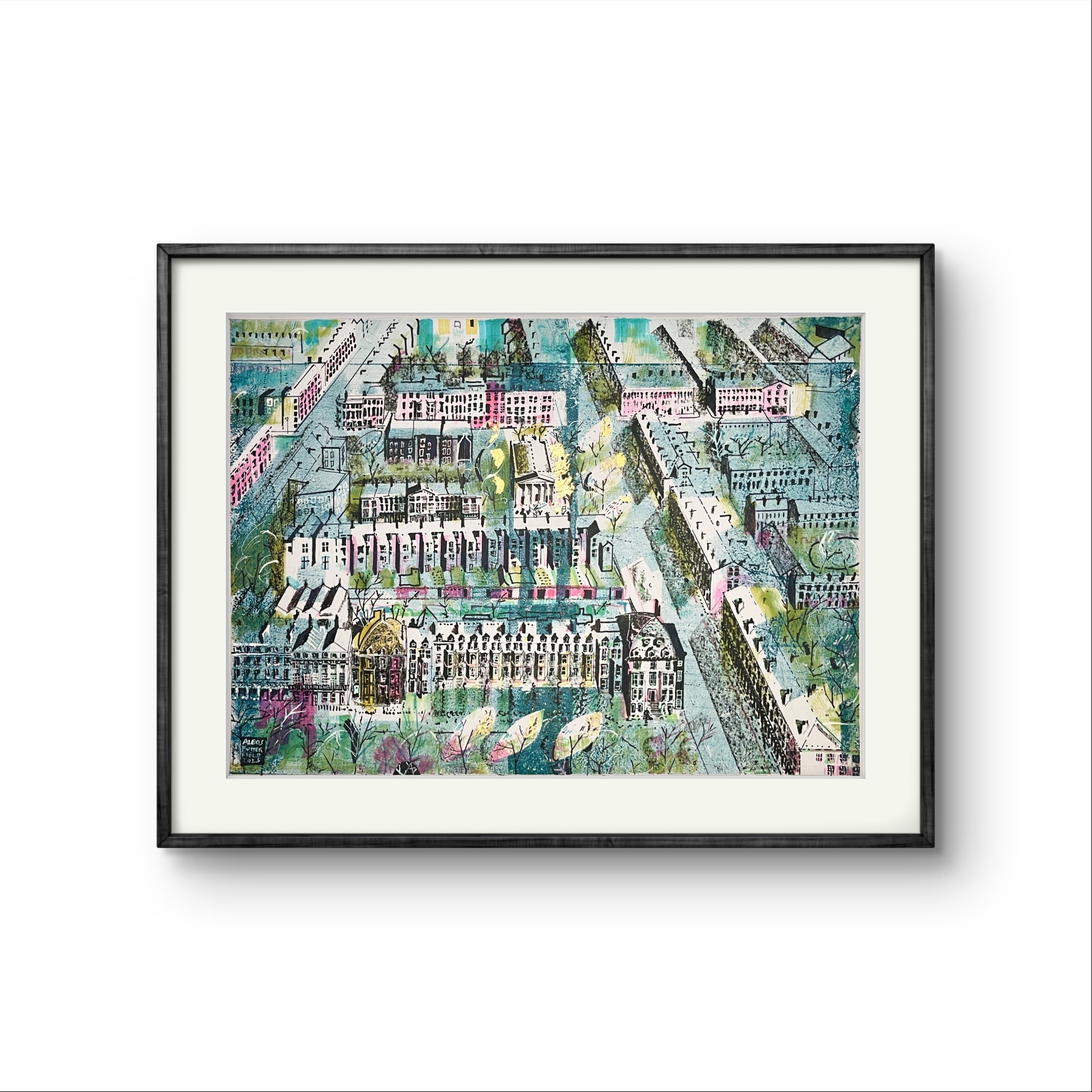 Alexis works with mixed-media drawing including use of wax resists to create surfaces with sharp contrasts of tone and texture. They represent a highly personal, emotional, intellectual, and graphic response to the personality of buildings and sense of place.