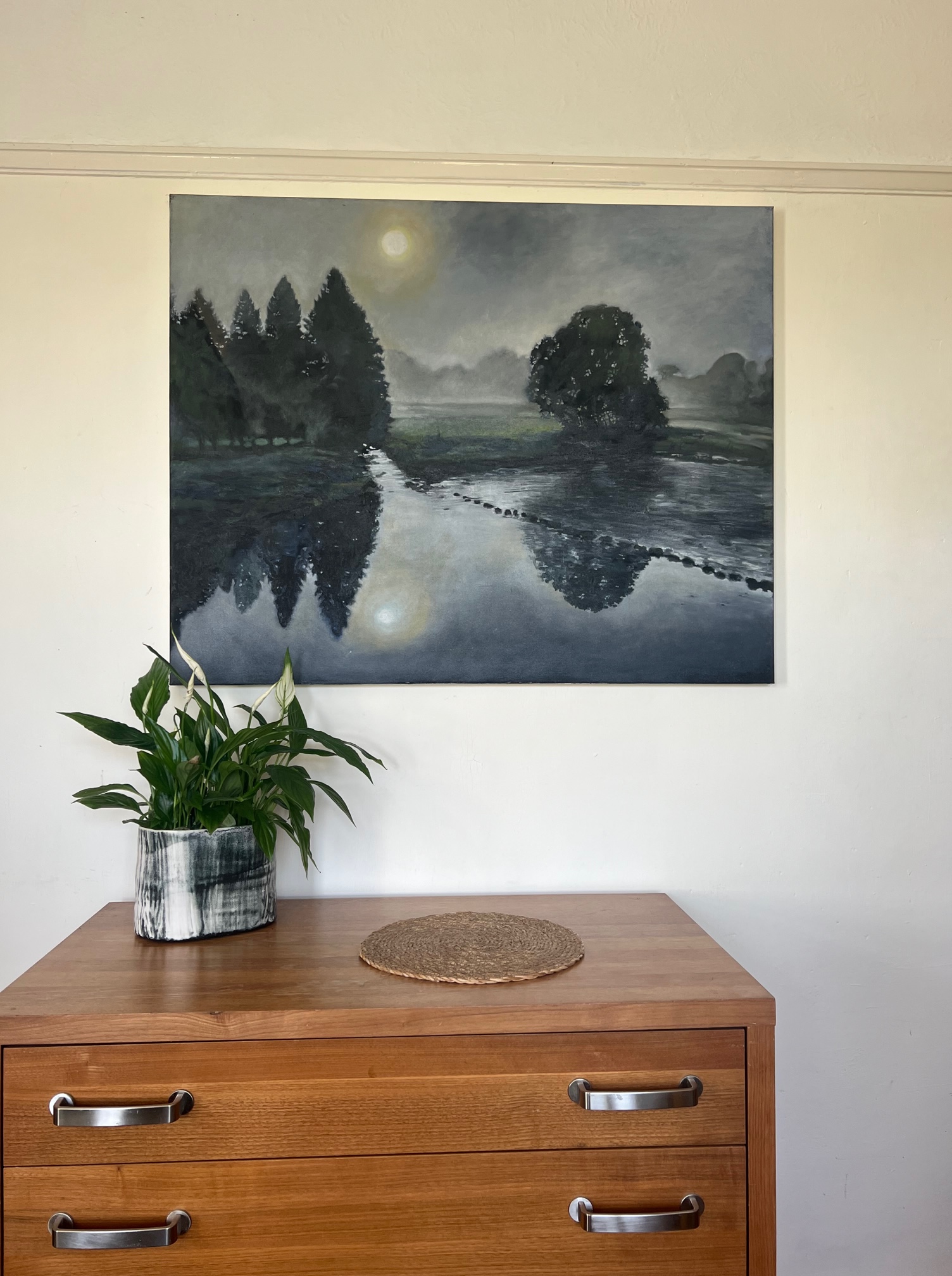 Each painting has a story to tell. The landscapes hint at something just over the horizon , figures look away from us, creating questions about what lies beyond our gaze.