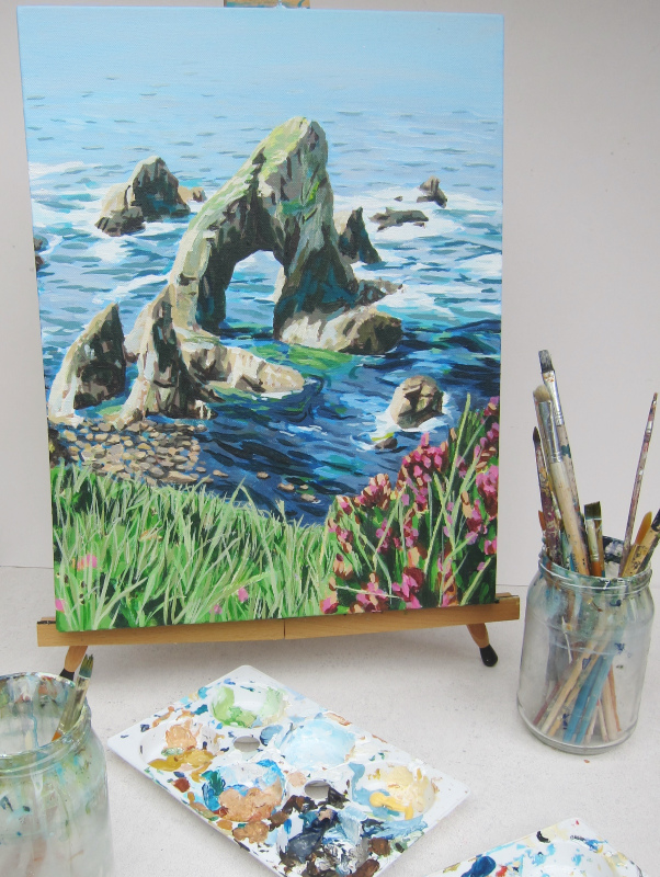 Nicola McGovern is an Artist and Creative Practitioner based in Liverpool and Donegal. Taking inspiration from the rugged landscape of the Wild Atlantic Way, her paintings explore contrasting colours and textures through flat layers. Her papercut seascapes, landscapes and portraits are made from multiple layers of intricate hand-cut paper and have been published by Liberty London, Apartment Therapy and Brides. She has designed and produced many large scale 3D artworks for outdoor public sculpture trails, including the Ukraine-inspired EuroLearn Pysanka Egg Display, which was developed in partnership with pupils at St. Benedict’s Catholic Primary School for Eurovision 2023 in Liverpool.
