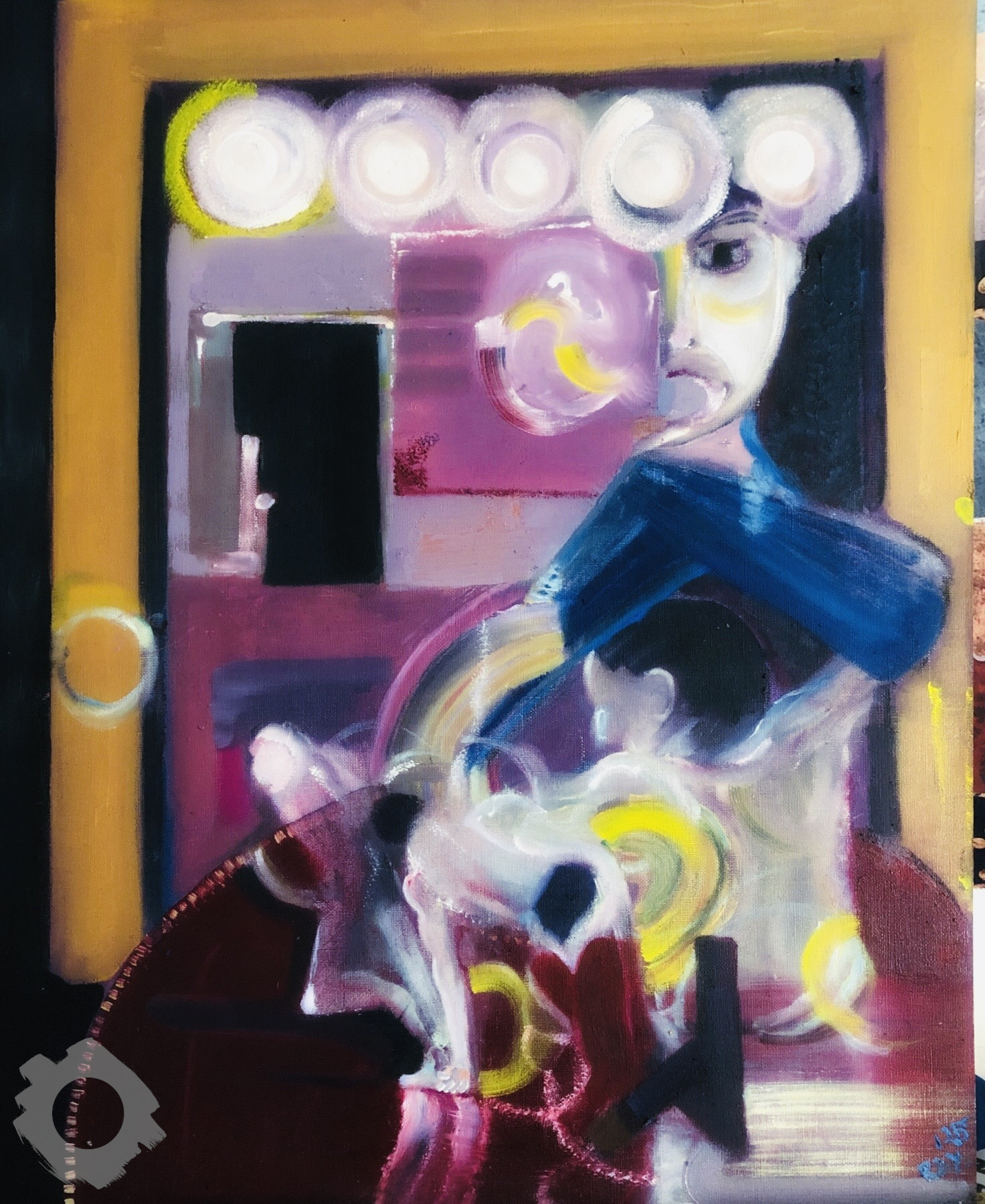 This is the first work in David’s Threshold series, an exploration of the inner world and hidden motivations within the actor’s psyche. Kristen Stewart has remarked that “the only time she can move freely is when she acts.” Other artists, too, draw on internal forces they summon in order to ‘move.’ In this piece, David contrasts a sense of blankness with almost chaotic movement within the framework.