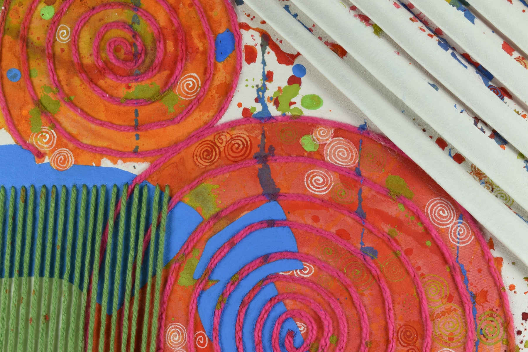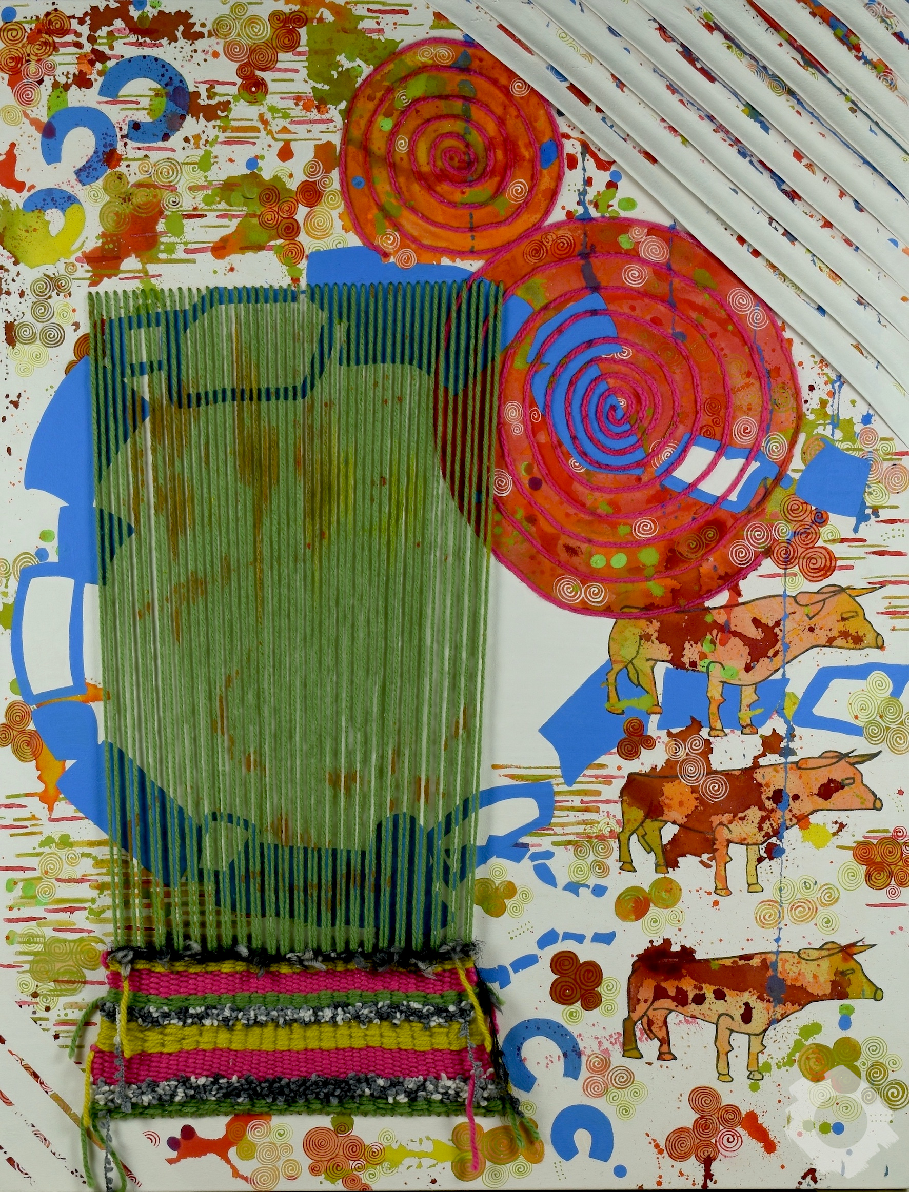 Mixed media and wool on canvas.