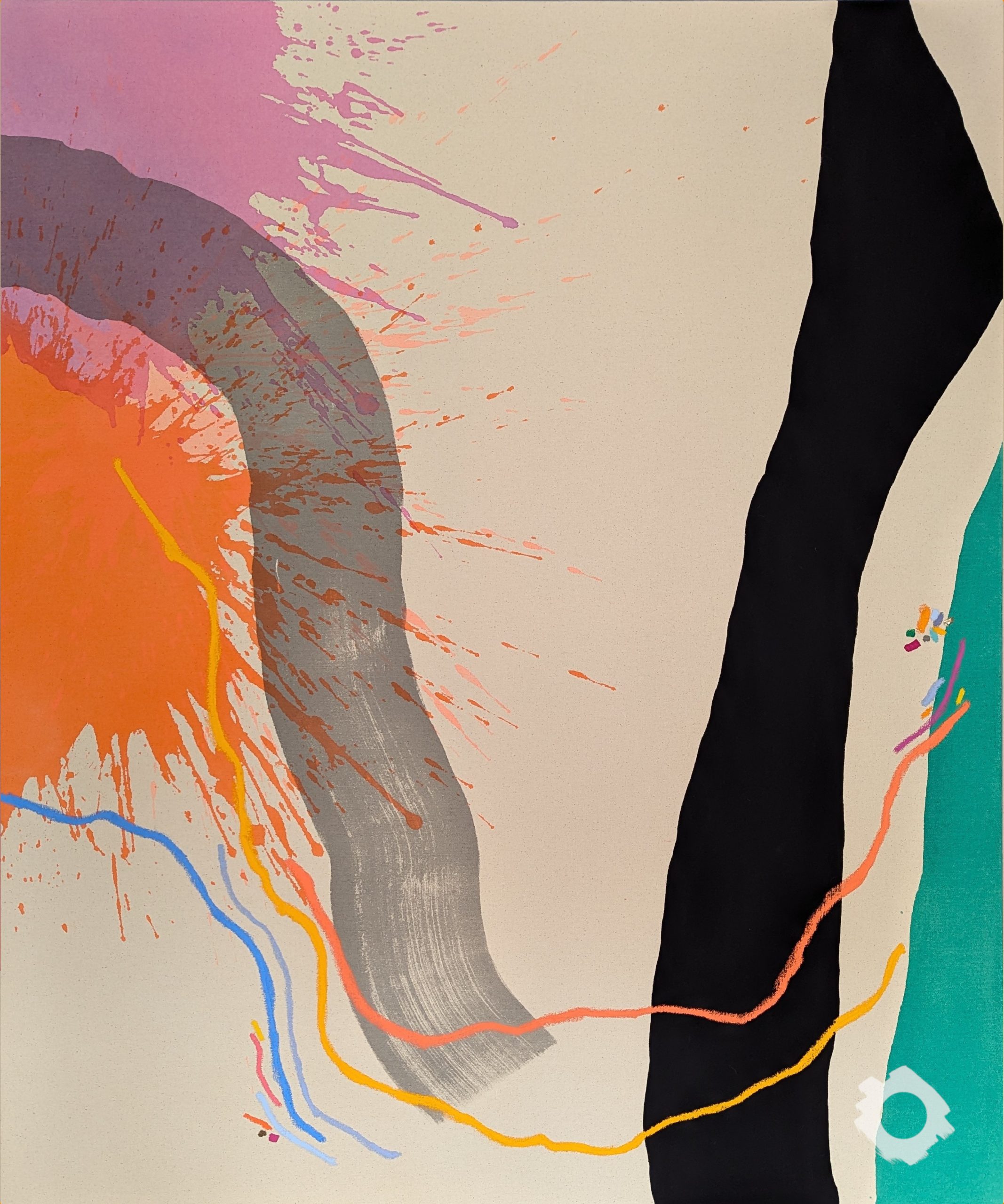 ‘Nature plays a big role in my creation process. I am inspired by the lines, edges and colours that I see when I am out exploring as well as the experience along the way. I often find myself lost in simplifying the forms in my head. I try to translate this to my art by letting the mediums consume a surface or interact with other colours, with little or no interference into the movement. This fascinates me, as this process gives the potential outcome an ambiguity which is most intriguing. This is in complete contrast to the line work which is very purposeful and rigid which I always add last, it grounds the work and gives it solidity and balance.